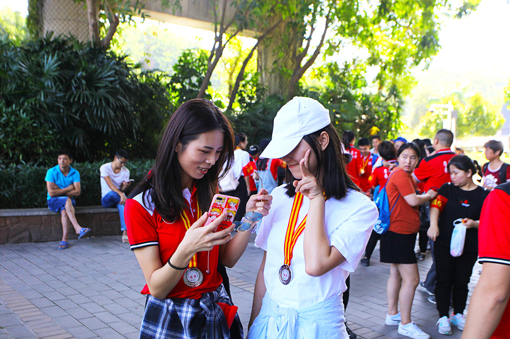 这次登山小伙伴们一共被分为四组,以小组竞赛的形式进行,按照每组队员登顶的时间来计算积分与成绩。站队名称也十分有特色的以公司的产品来命名,如:“金镶玉队”“酷钻队”“琅彩队”“翡翠队”等。